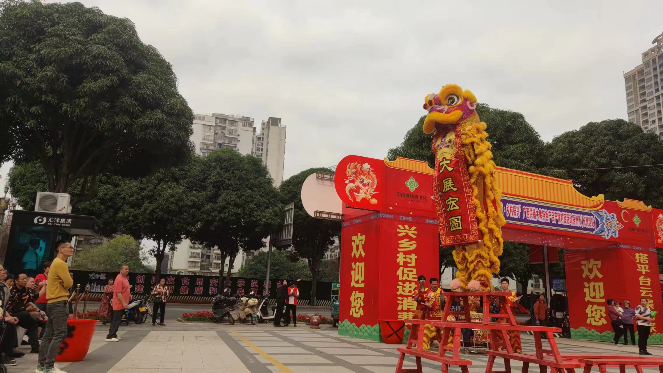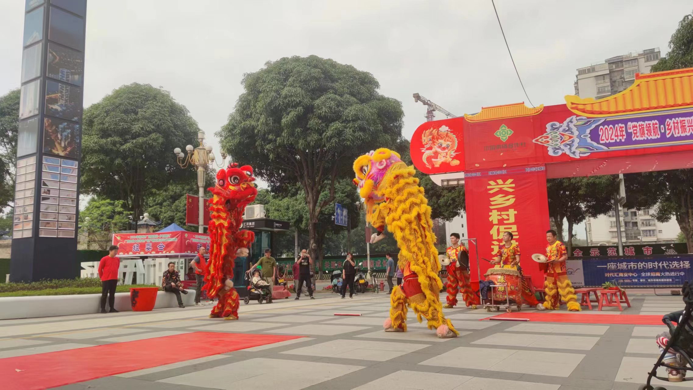 藤县狮舞、藤县东方狮王、藤县禤洲龙狮团,藤县醒狮表演,广西供销大集特色产品产销对接活动梧州市(长洲区站)。2024年3月29日上午舞狮表演。