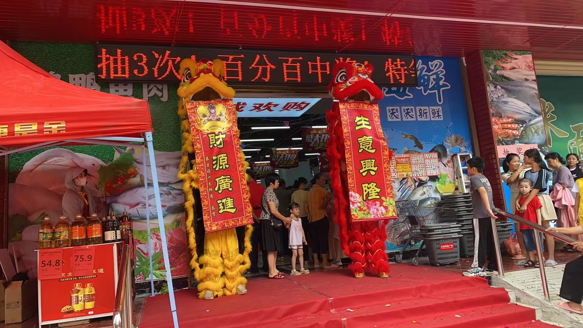 藤县禤洲龙狮团,藤县狮舞,藤县醒狮 2024年5月6日梧州弘勤生鲜市集博汇花园店开业