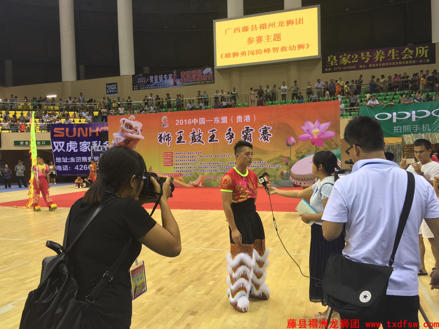 贵港比赛比赛夺冠,图为接受记者采访 -