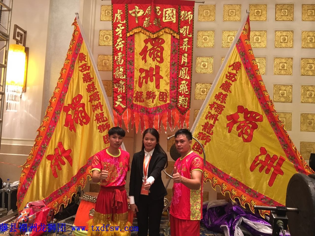 广东省广西商会十周年庆典舞狮2016年12月20号,在广州东方宾馆,广东省广西商会成立十周年庆典舞狮表演,运动在试桩。 -