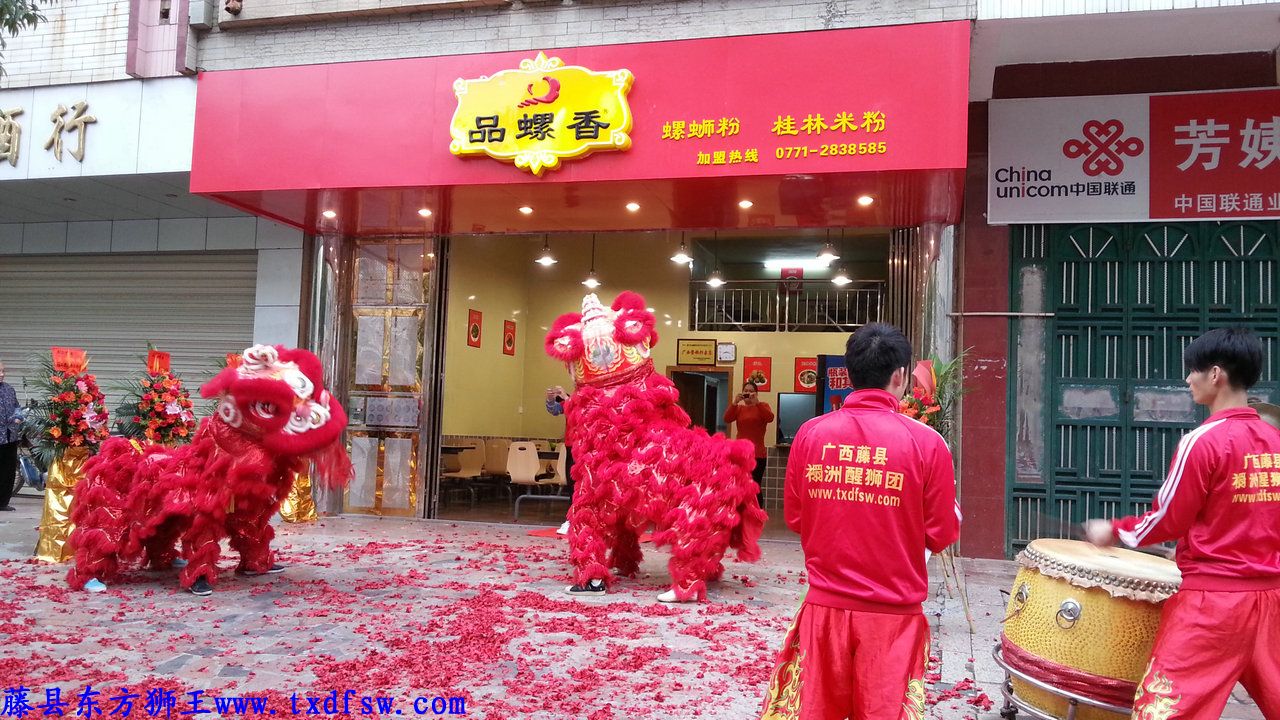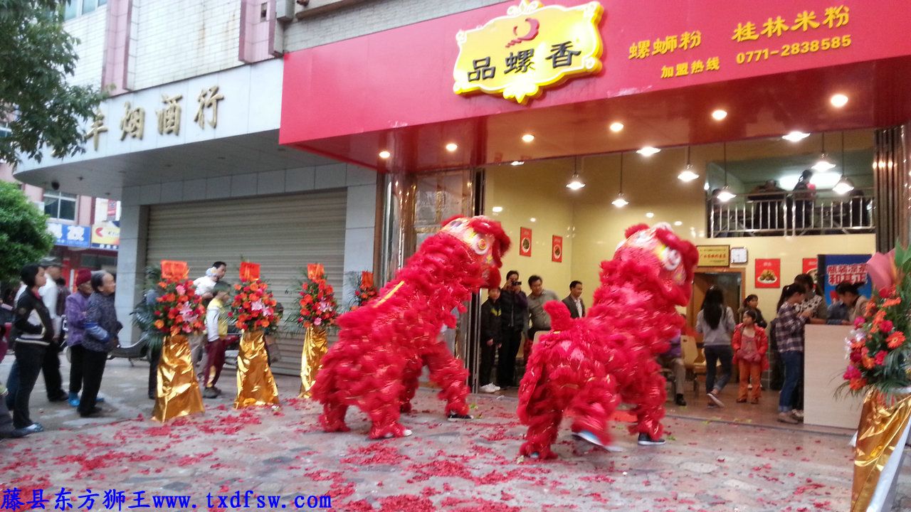 藤县品螺香开张二个地狮表演2013年3月31日上午九点零八分中国广西梧州藤县藤州中学路口品螺香舞狮表演,二个地狮表演。 -
