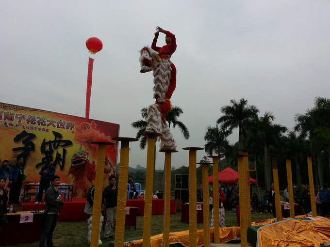 高难度飞桩高难度飞桩,2013南宁花花大世界首届广西狮王争霸赛冠军-金奖 -