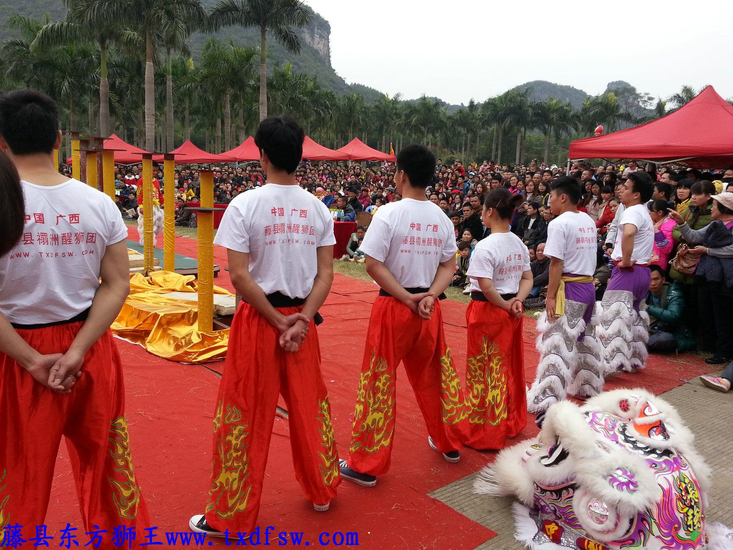 表演结束列队听成绩首届南宁花花大世界比赛,藤县禤洲醒狮队(东方狮王)表演结束列队听成绩 -