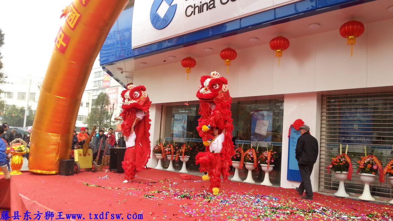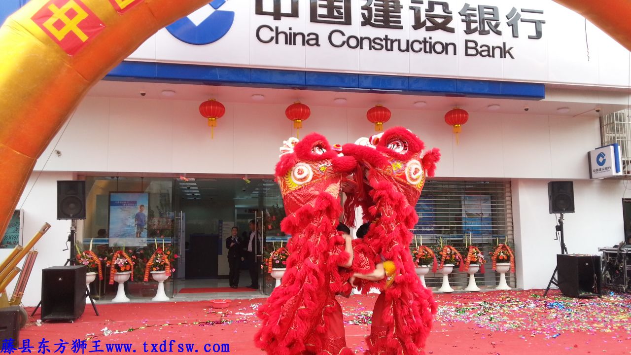建设银行藤县支行乔迁庆舞狮2013年1月18日,广西藤县河东转盘建设银行藤县支行乔迁庆舞狮,领导合影。 -