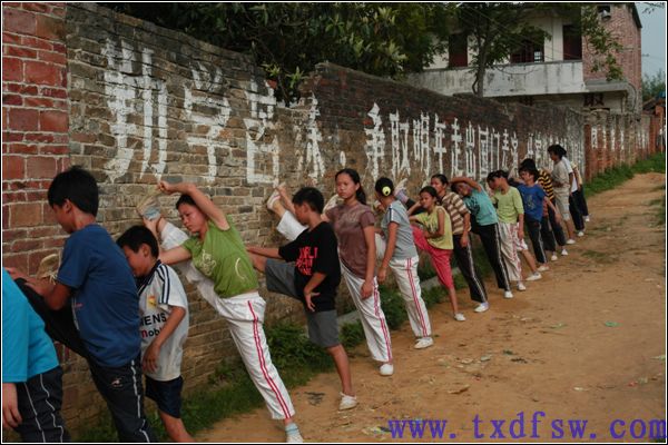 压腿练习学员们在压腿练习