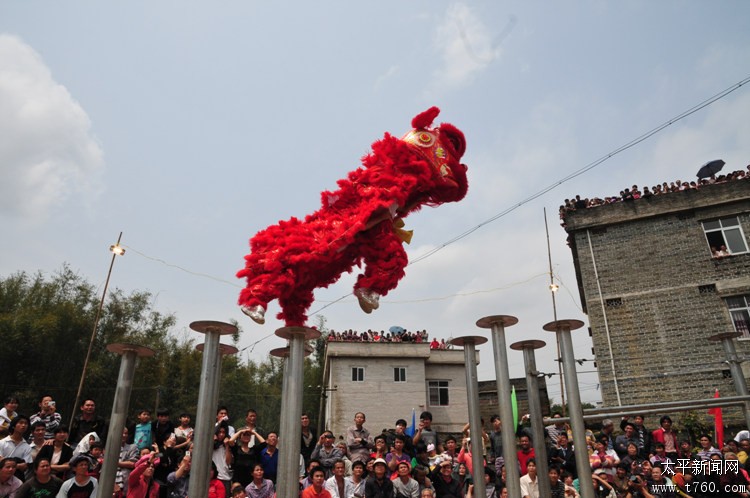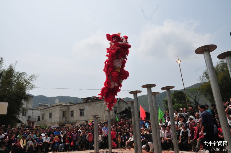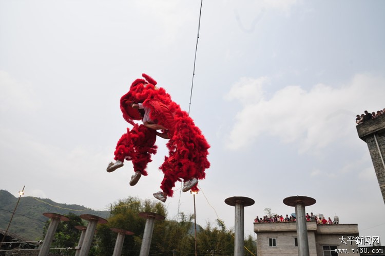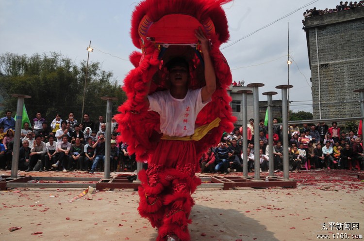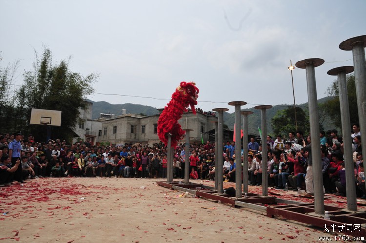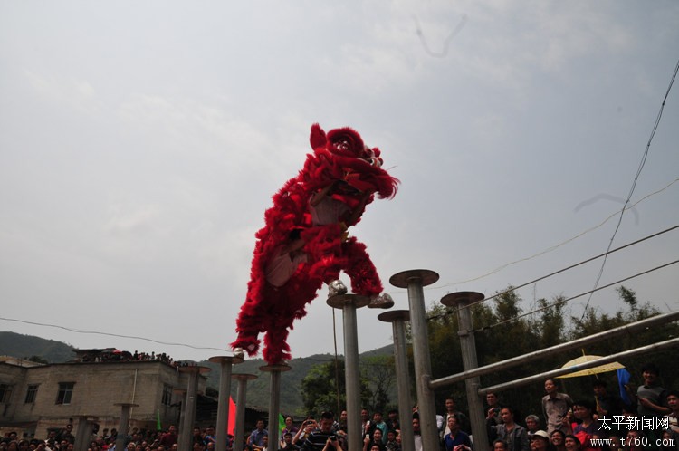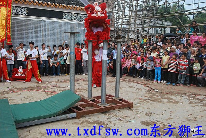 狮子飞桩12012年11月20日在广西藤县太平黄氏宗祠,东方狮王舞狮表演。场面十分精彩!!! -