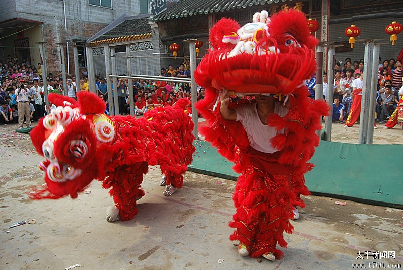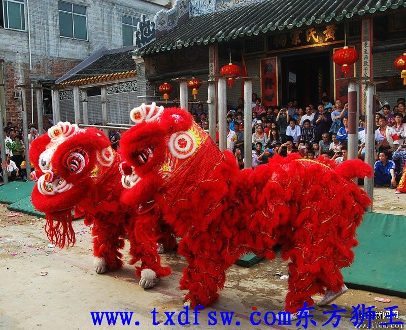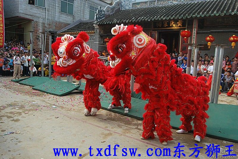 双狮拜祠堂门口2012年11月20日在广西藤县太平黄氏宗祠,东方狮王舞狮表演。场面十分精彩!!! -