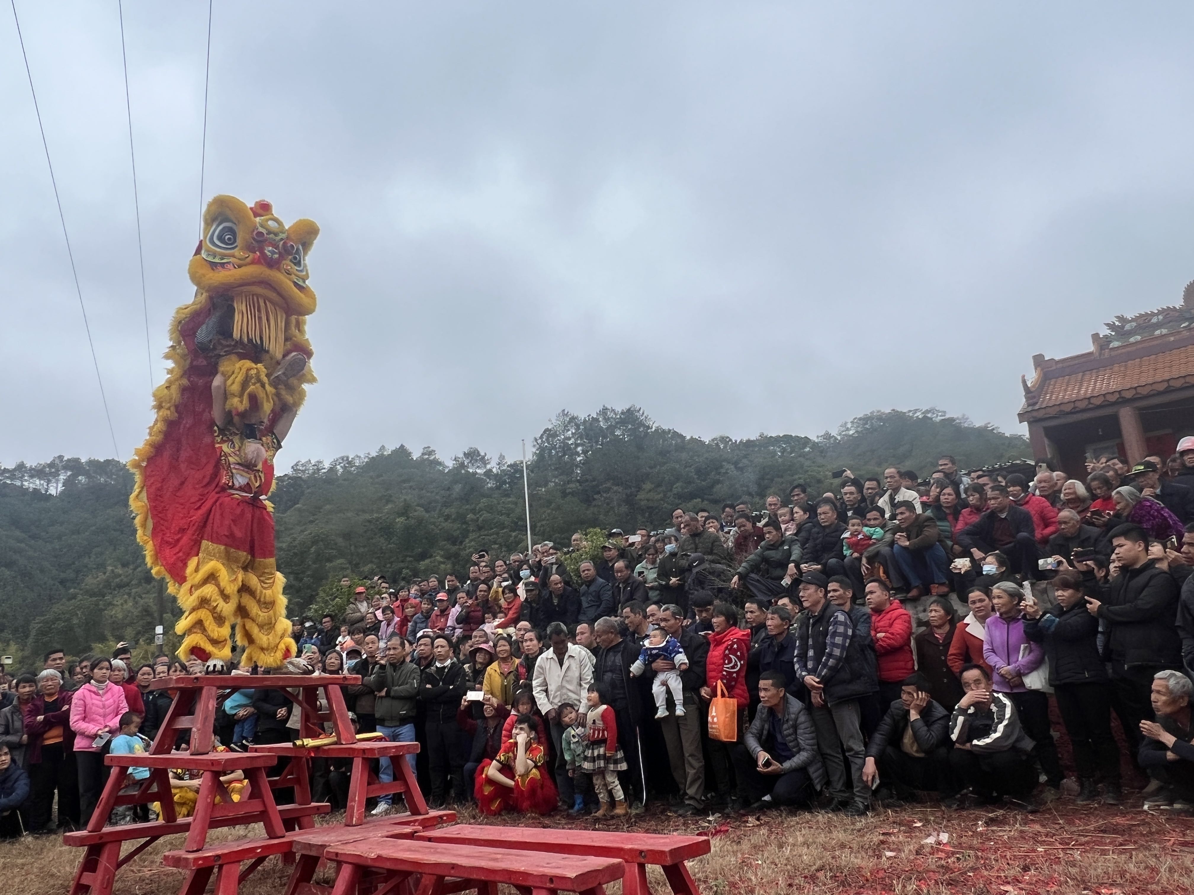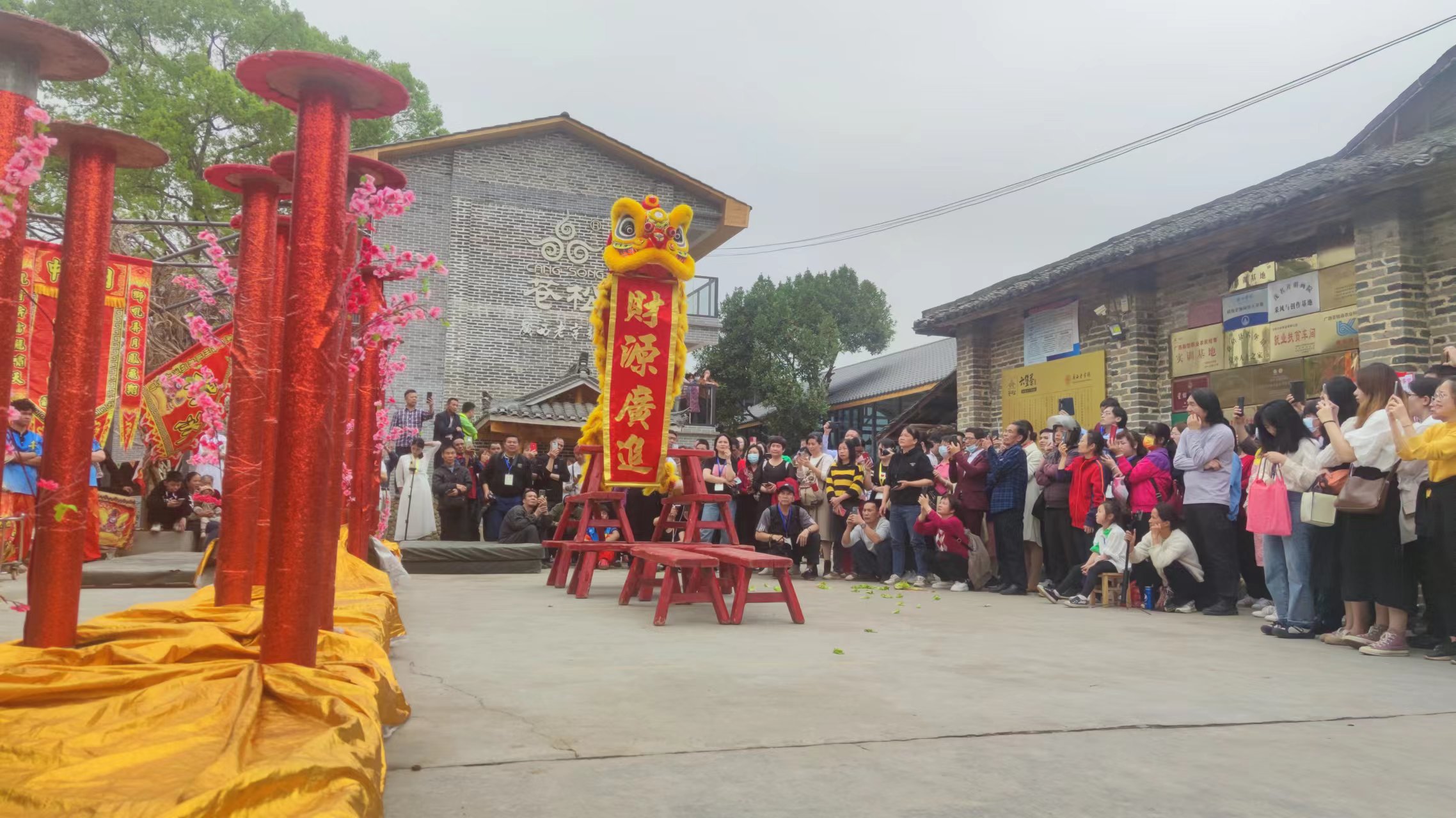 高桩舞狮表演苍梧县2023年开茶节3月21日在六堡镇举行,届时,将举办丰富多彩的活动,大力宣传和推介六堡茶品牌,助力乡村振兴,推动六堡茶产业提档升级。狮子点睛。 -