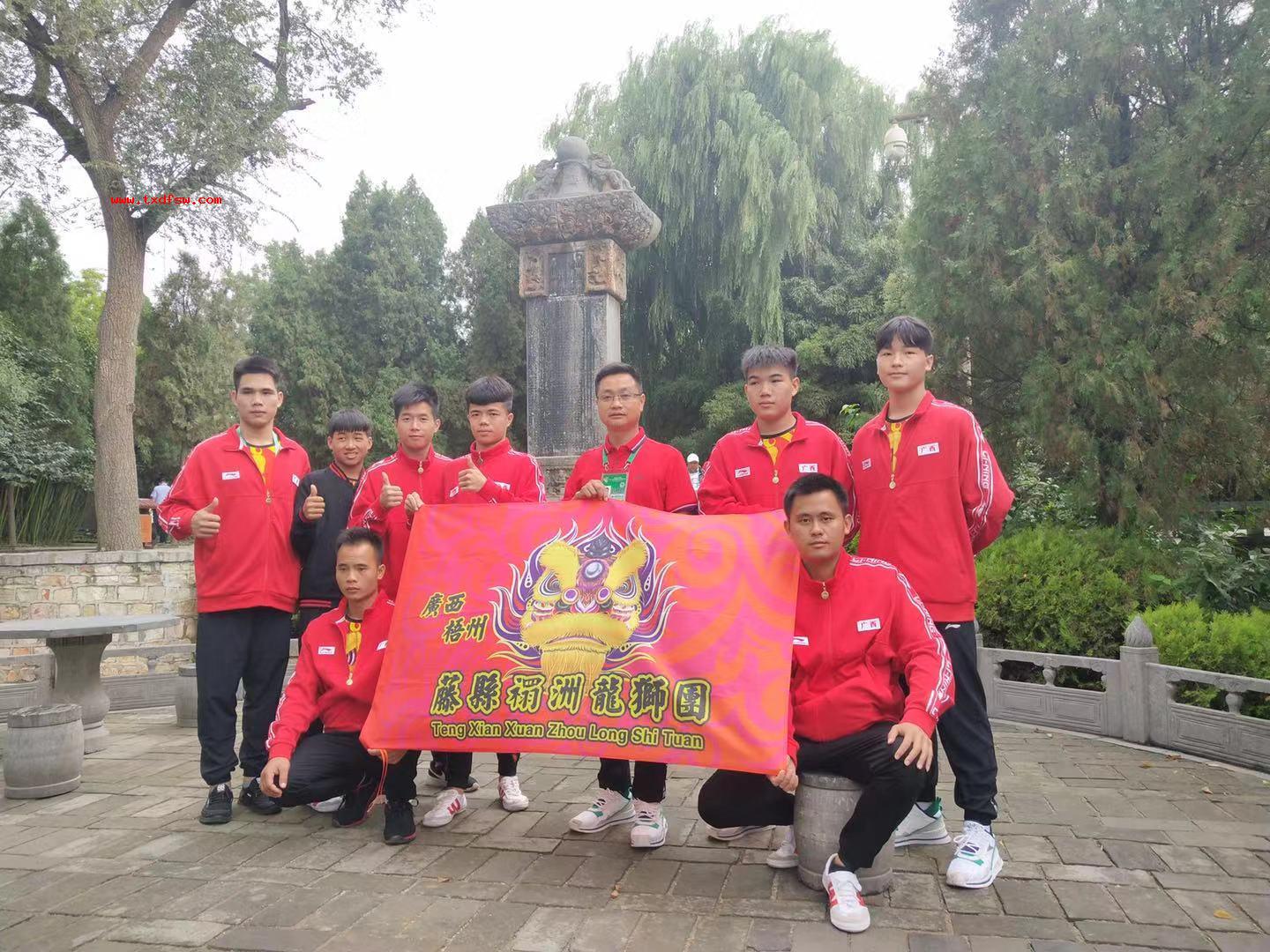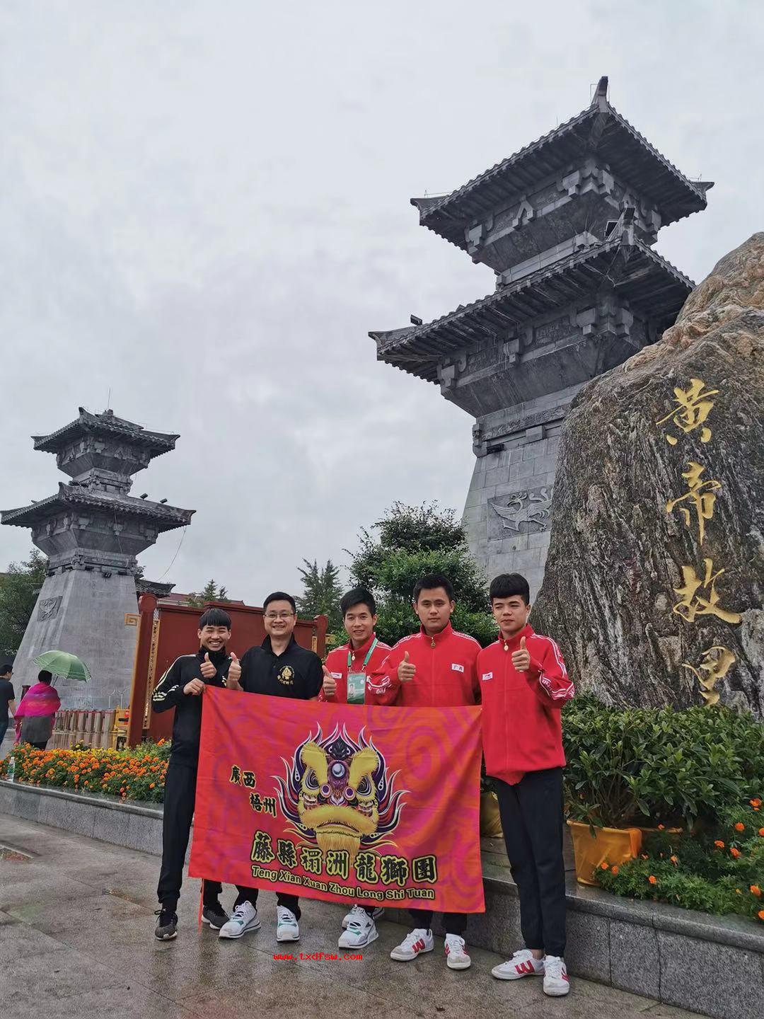 河南黄帝故里一游2019年9月10日,以广西梧州藤县禤洲龙狮团为代表广西参加全国少数民族传统体育运动会表演项目技艺类比赛一等奖结束后河南黄帝故里一游,集体合照。 -