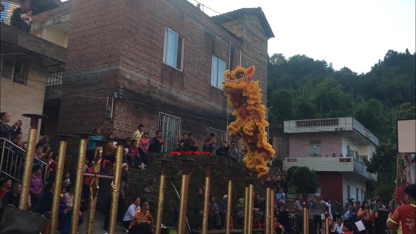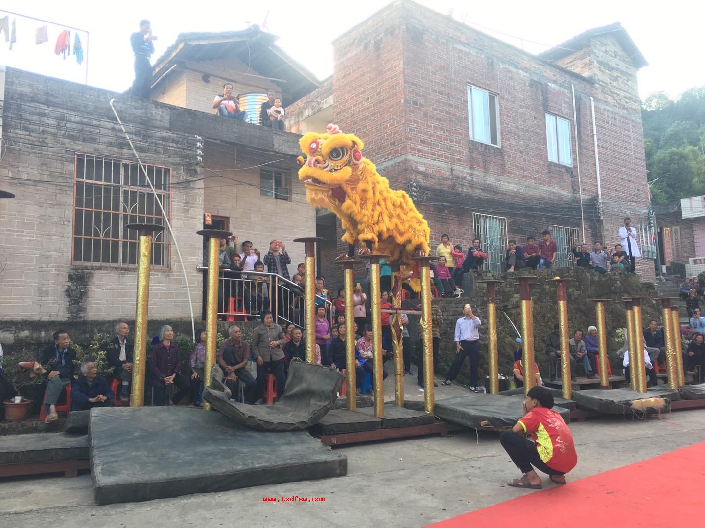 苍梧县舞狮狮子跳桩表演2019年11月1日梧州市苍梧县理冲村六堡茶传统工艺制作比赛舞狮表演 -