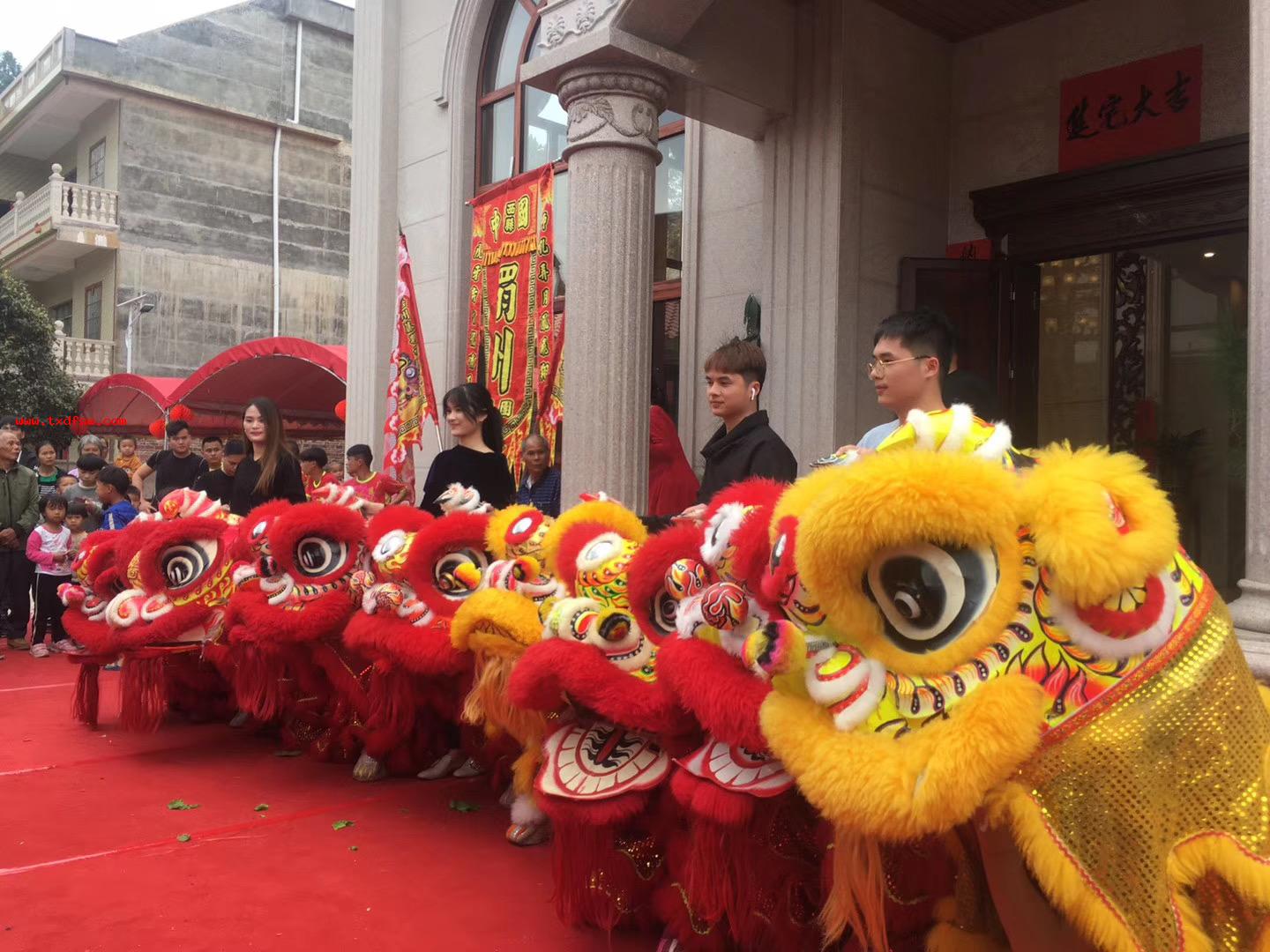 梧州石桥石梯村舞狮表演梧州石桥石梯村舞狮表演狮子与人员大合照 -