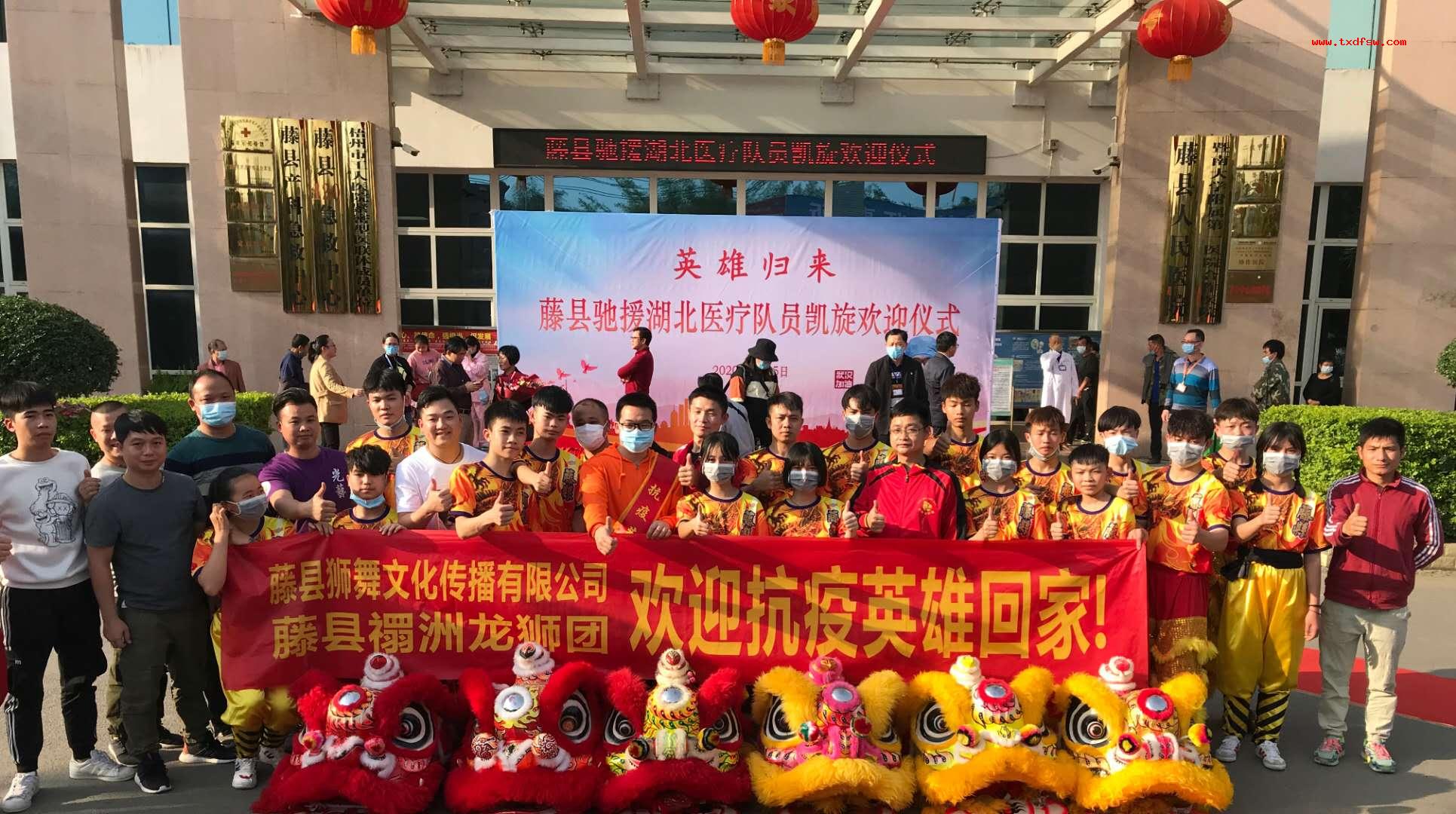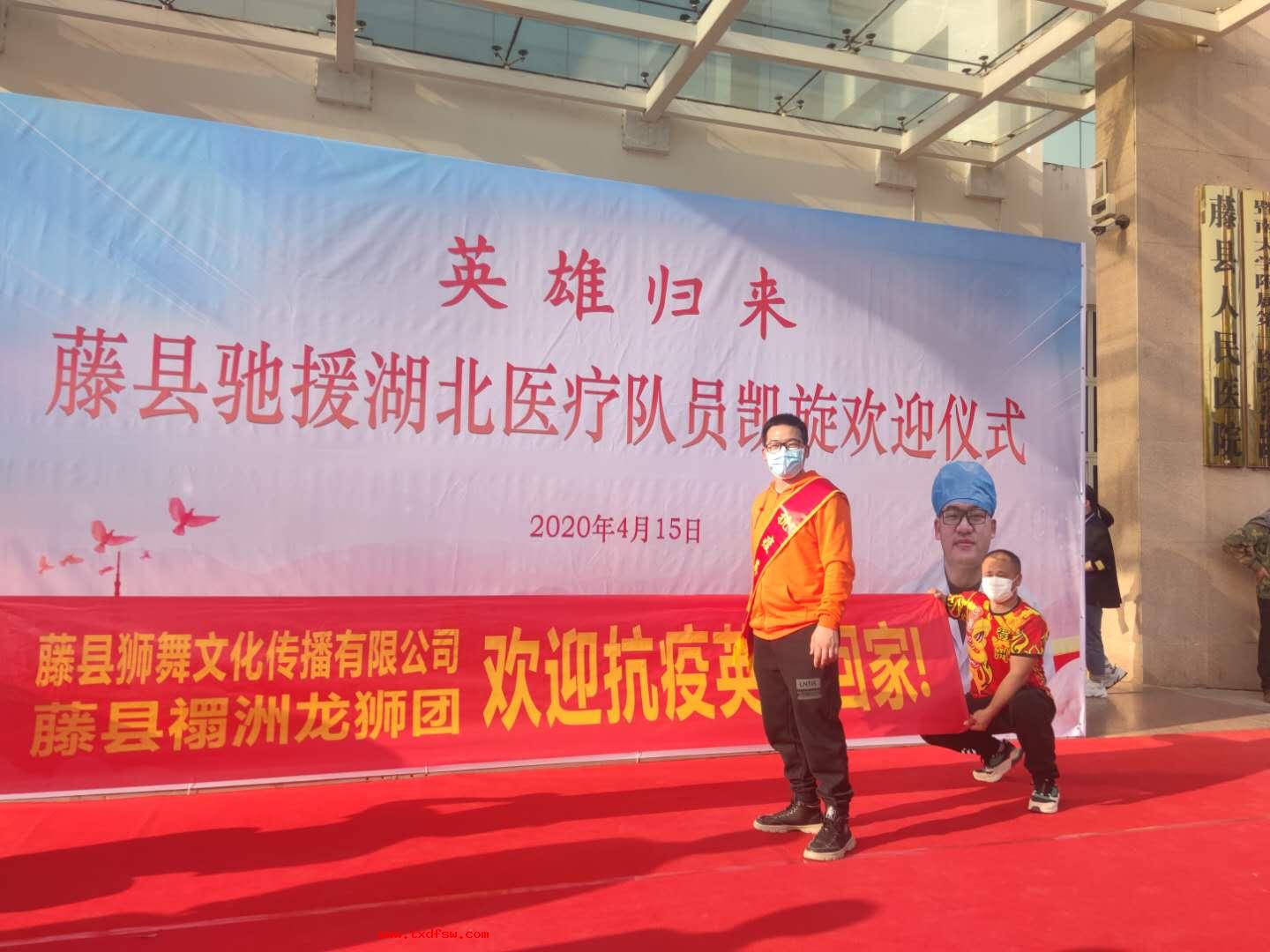 欢迎抗疫英雄回家2020年4月15日抗疫英雄回家,东方狮王狮队迎