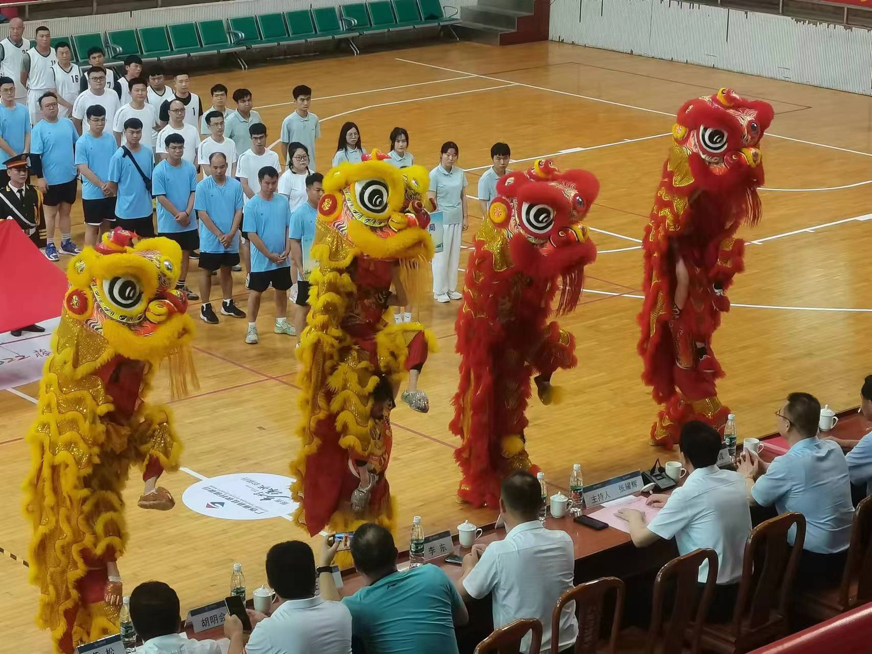 舞狮表演藤县舞狮队醒狮表演广西梧州市藤县禤洲龙狮团,中交二公局第四届职工运动会广西会场开幕式舞狮表演,6月17日在藤县体育馆举 -