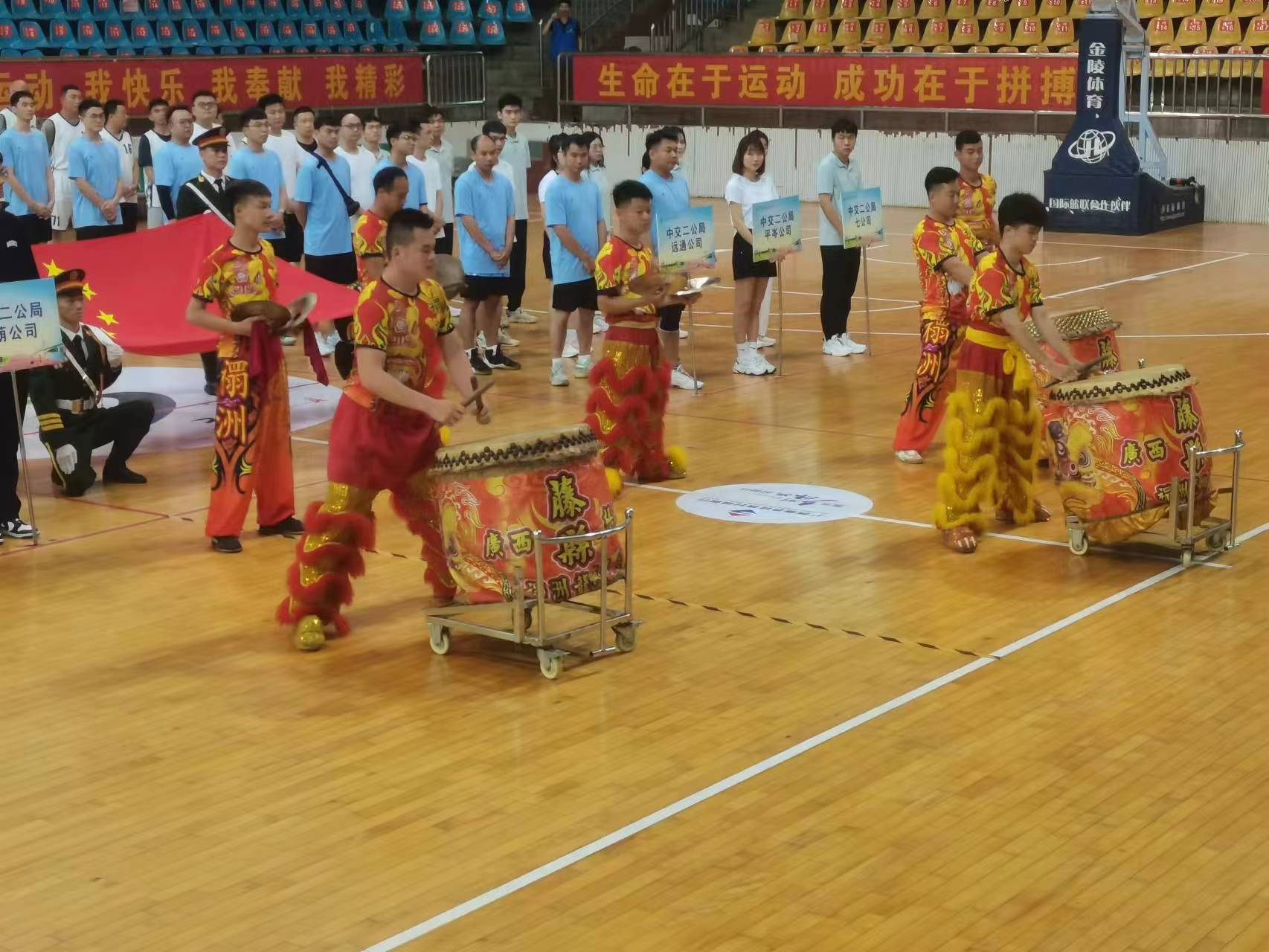 群鼓表演藤县醒狮队,藤县禤洲龙狮团6月17日,上午,在广西梧州市藤县藤县体育馆举办中交二公局第四届职工运动会广西会场,开幕式舞狮表 -