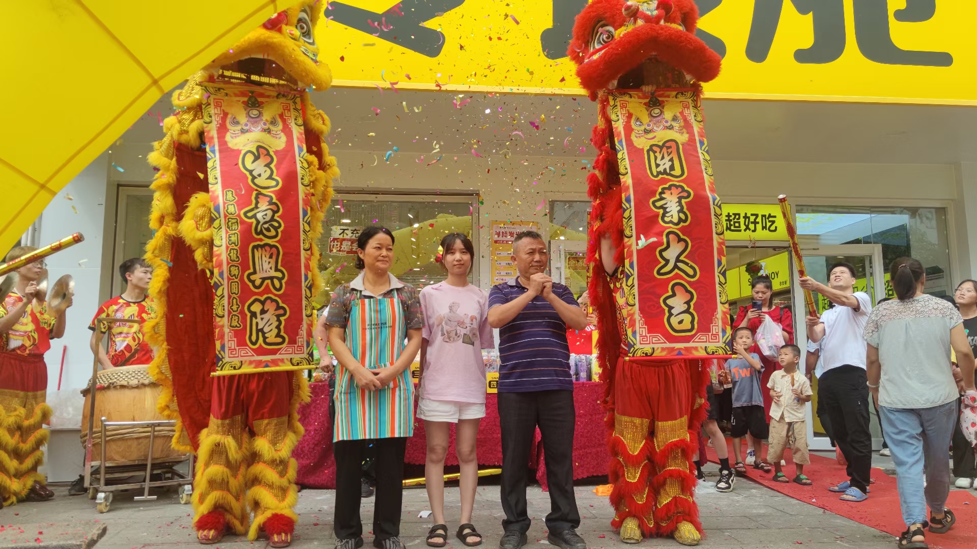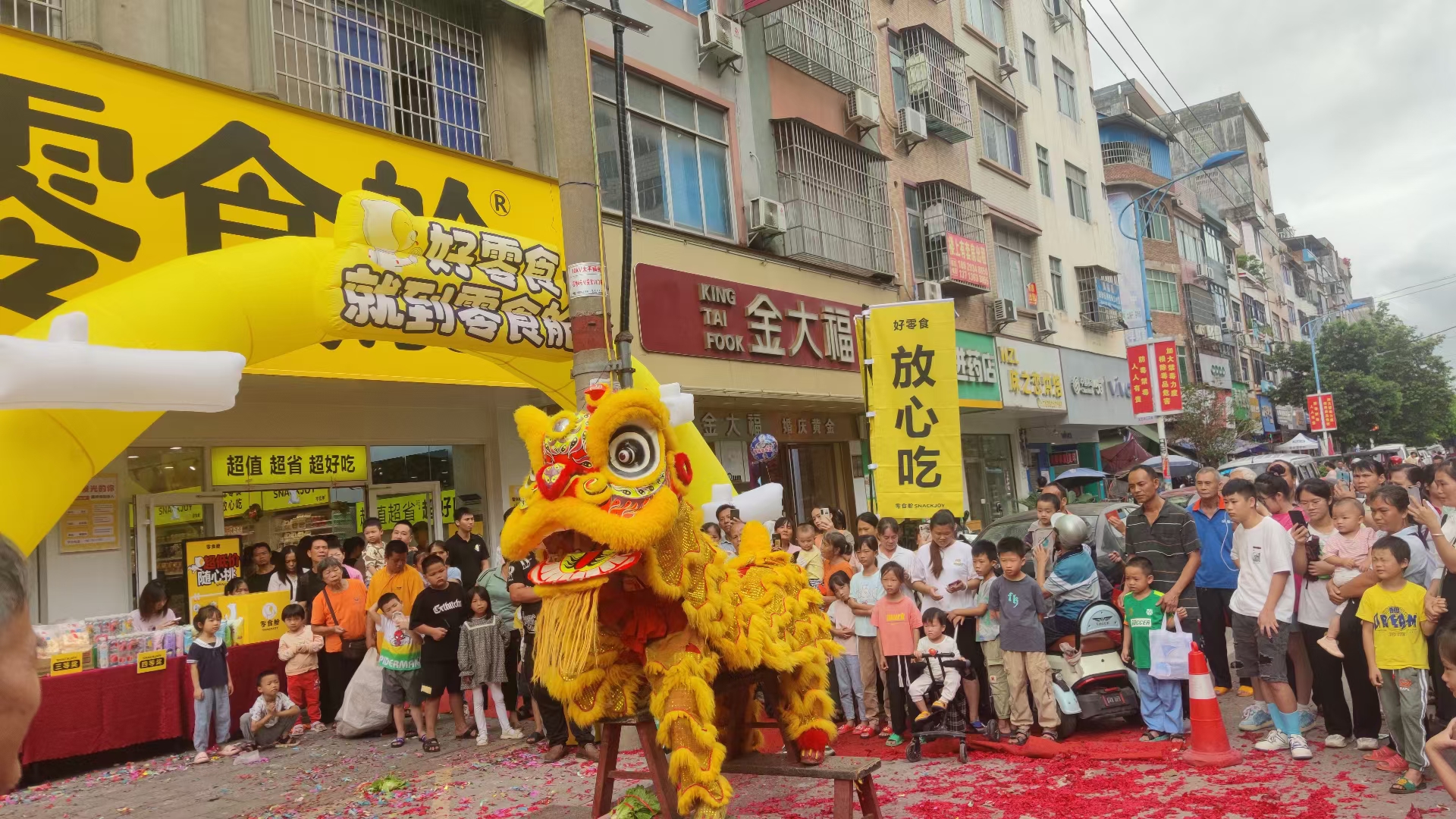 开业狮子合照藤县醒狮队,藤县禤洲龙狮团祝贺:“零食舱”太平店开业大吉、生意兴隆 -