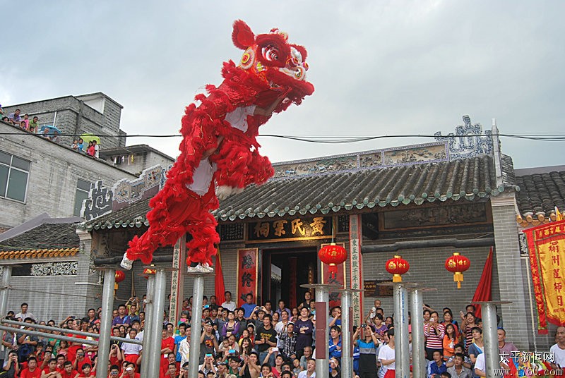 飞桩22012年11月20日在广西藤县太平黄氏宗祠,东方狮王舞狮表演。场面十分精彩!!!