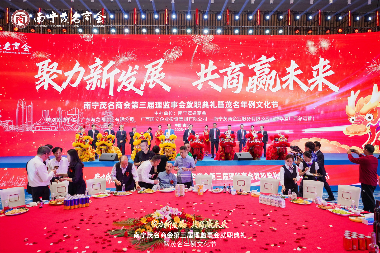醒狮献瑞2023年5月8日傍晚,南宁茂名商会第三届理监事会就职典礼暨茂名年例文化节在南宁国际会展中心金桂花厅隆重举行。舞狮表演狮子点 -